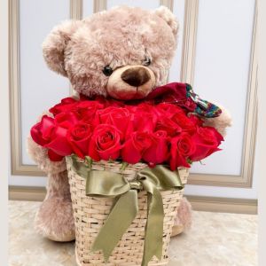 8. Ramo de Rosas Oso de Peluche - Carmesí